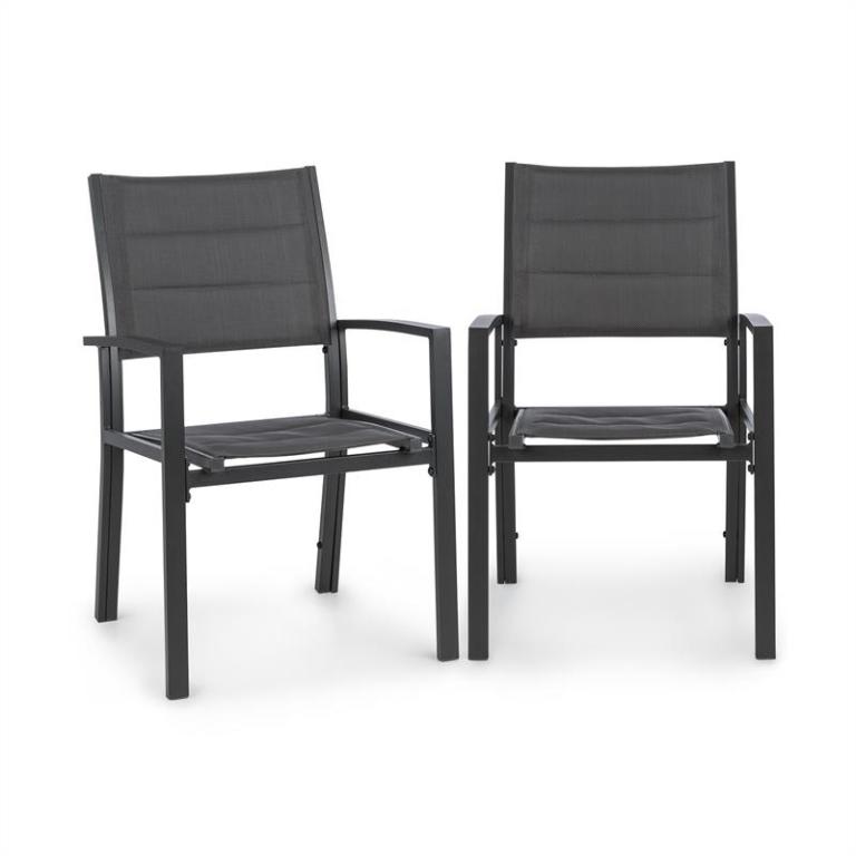 Vychutnávejte si čerstvý vzduch na zahradě, terase nebo na balkoně: zahradní židle Blumfeldt Torremolinos s měkkým polstrováním umožňují oddychové chvíle ve venkovním prostředí. Se zahradními židlemi Blumfeldt Torremolinos zažijete nebe na zemi - díky kombinaci potahu ComfortMesh a čalounění ClassicComfort můžete sedět jako na obláčku. Inteligentní tkanina ComfortMesh je nepromokavá, prodyšná, odolná vůči povětrnostním vlivům, velmi rychle schne a dá se jednoduše vyčistit vlhkou utěrkou. Takže židle jsou vždy připraveny na další opalování. Má také dlouhodobou užitnou hodnotu. Rám z hliníkových trubek je maximálně stabilní, takže zahradní židle váží pouze 4 kg. Práškové lakování kovových částí se postará o dodatečnou odolnost vůči povětrnostním vlivům. A protože odpočinek je nejkrásnější ve dvojici, dodávají se zahradní židle Torremolinos rovnou v praktické sadě 2 kusů. Dokonalá relaxace: se zahradními židlemi Blumfeldt Torremolinos si můžete vychutnat bezstarostné hodiny na čerstvém vzduchu díky měkkému sezení a robustnímu rámu.