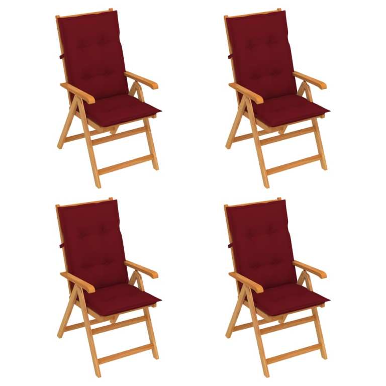 vidaXL Záhradné stoličky 4 ks s vínovočervenými podložkami tíkový masív