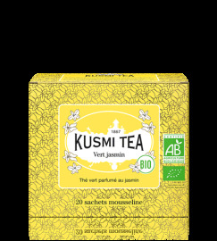 Kusmi Tea čaj Green tea with Jasmine z řady Flavoured Teas. Zelený čínský čaj ve spojení s okvětními lístky jasmínu je klasikou mezi ochucenými zelenými čaji a patří dlouhodobě k nejoblíbenějším. Tento čaj je ideální podávat spolu s jídlem, nebo jako odpolední čaj. Tento čaj doporučujeme podávat spolu s jídlem. Dominující chuť: květinové tóny. Doporučení pro přípravu: Doba louhování: 3-4 minuty Teplota: 80°C Na přípravu 1 šálku čaje doporučujeme použít 2-3 g (1 čajová lžička) čajové směsi. Kovová dóza 25 g / 100 g Kovová dóza obsahuje 25 g / 100 g sypaného čaje. Snadno se otevírá i uzavírá a čaj je v ní skladován bez přístupu vzduchu – což pomáhá uchovat jeho aroma a chuť. 20 čajových sáčků Balení obsahuje 20 čajových sáčků, které jsou naplněny 2 gramy čajové směsi. Jemné sáčky jsou nebělené a neobsahují žádná lepidla ani kovové sponky, které by mohly negativně ovlivnit chuť čaje. Prohlédněte si kompletní nabídku prémiových čajů Kusmi Tea na našem specializovaném čajovém eshopu, včetně kompletní nabídky balení čaje Kusmi Tea Jasmine green tea.