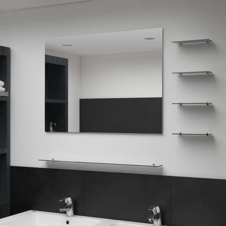 Naše nástěnné zrcadlo s poličkami a elegantním designem je jak praktickým, tak dekorativním doplňkem do vaší koupelny, obývacího pokoje nebo ložnice. Zrcadlo je vyrobené z tvrzeného skla, a proto má tento koupelnový nábytek dlouhou životnost a snadno se čistí. Obdélníkový rám má minimalistický moderní design, který zkrášlí každou místnost, zatímco čtyři malé poličky a jedna velká police nabídnou dodatečný úložný prostor. Můžete si zde úhledně zorganizovat různé oděvní doplňky či kosmetické potřeby nebo si vystavit své oblíbené dekorace. Sestavení zrcadla je snadné.