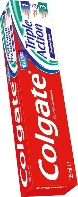Colgate Triple Action, 100 ml, Pre kompletnú ochranu unisex, Zubná pasta Colgate Triple Action zaisťuje kompletnú starostlivosť o vaše zuby aj ďasná. Čistí zuby od zubného povlaku aj zvyškov jedál a súčasne ošetruje ďasná a sliznicu dutiny ústnej.Vlastnosti:spoľahlivo čistí zubyošetruje ďasnáobmedzuje tvorbu zubného povlakumá antibakteriálne a dezinfekčné účinkyzamedzuje usadzovaniu zubného kameňaPoužitie:Zuby si čistite minimálne 2× denne kvalitnou kefkou. Naneste primerané množstvo pasty na zubnú kefku a čistite zuby aspoň 2 minúty. Dôkladne vypláchnite dutinu ústnu.